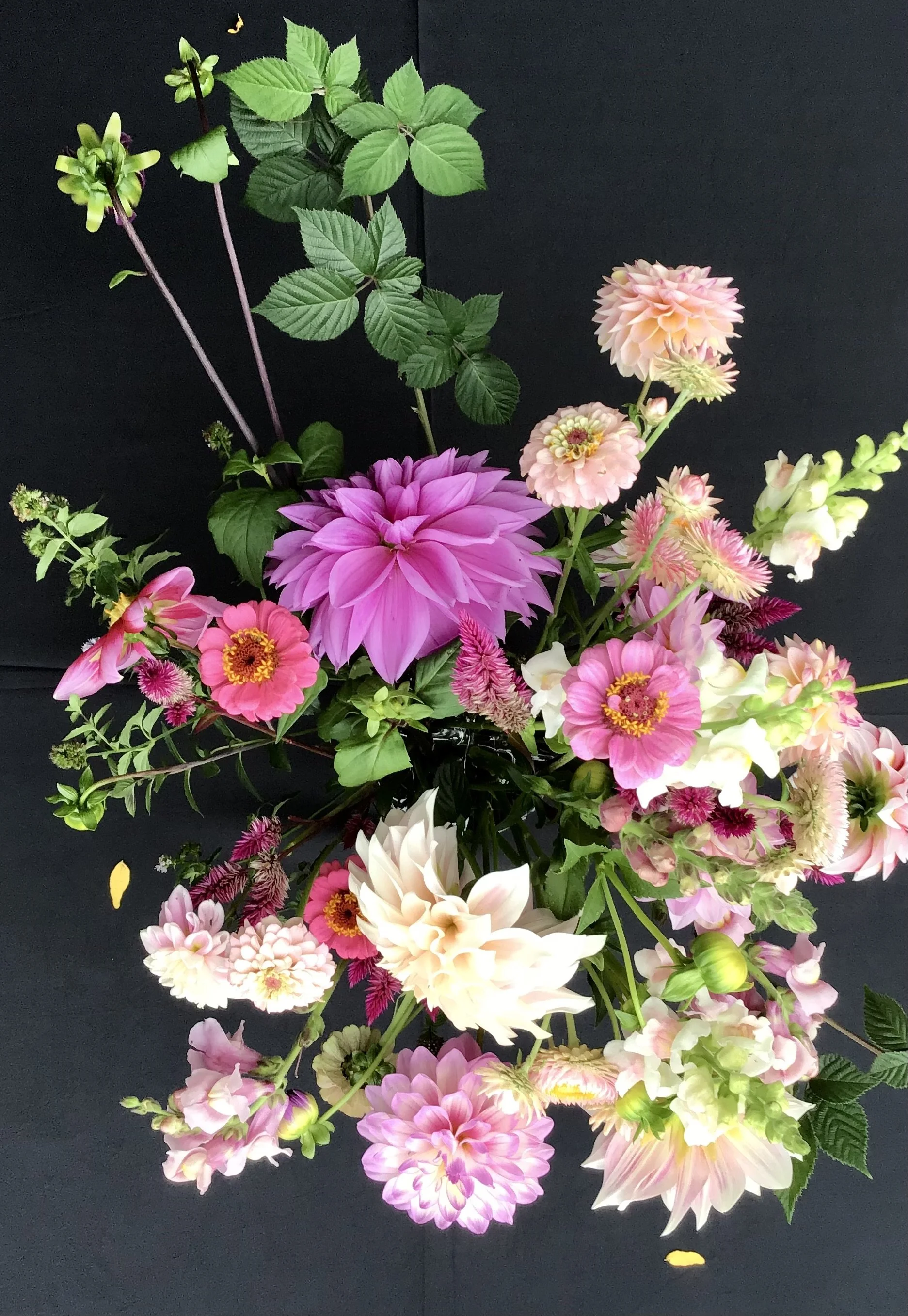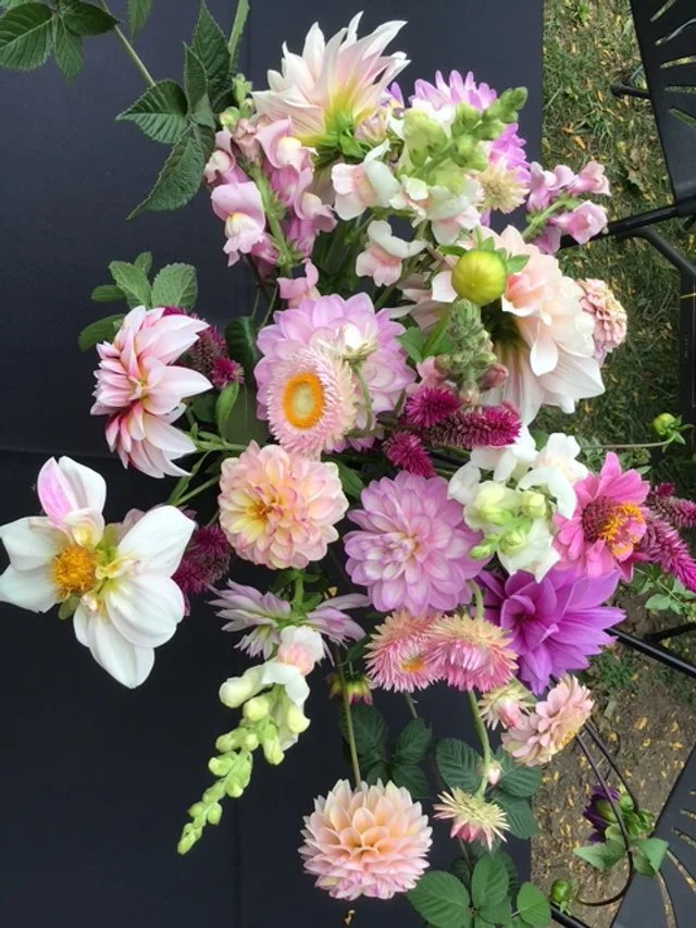 We offer custom made bouquets, arrangements, and bulk buckets of flowers. Our offerings will be dependent on the season, we work only with our own, seasonally grown, fresh cut flowers. Reach out to see what will be blooming when!